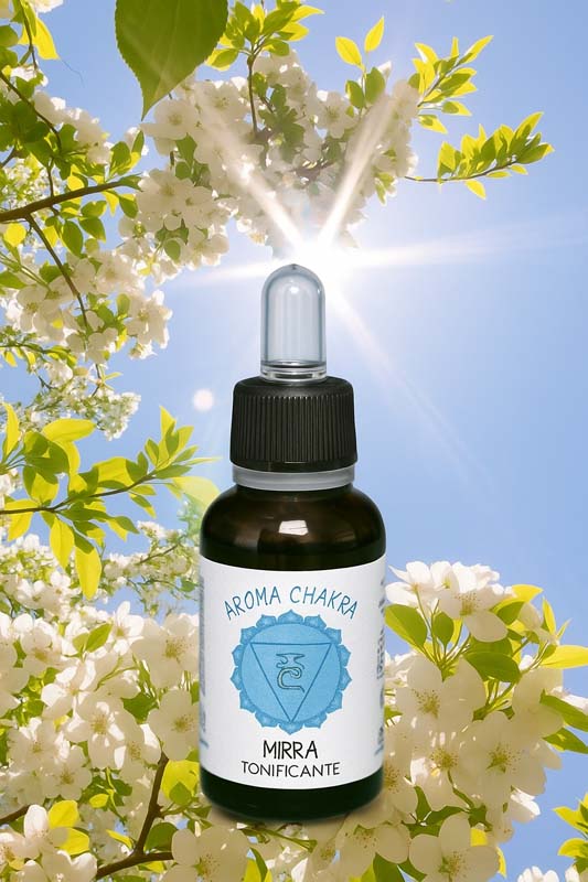 Το μύρο έχει καθαριστικές για το δέρμα, τονωτικές, βαλσαμικές ιδιότητες. Είναι ένα έλαιο που προστατεύει το δέρμα, ανακουφίζει από τις ρυτίδες, καταπραΰνει τους πόνους και τις αδιαθεσίες που προκαλούνται από δερματικές παθήσεις. Μειώνει ρυτίδες, λεπτές γραμμές και ραγάδες, θεραπεύει τα τραύματα, καταπραΰνει το ξηρό δέρμα. Ενισχύει τη διάθεση, καταπολεμά το στρες και το άγχος. Δρα ιδιαίτερα στο 5ο Τσάκρα καθώς οι δονήσεις του εμπλουτίζουν τις εκφράσεις μας χαρίζοντας δημιουργικότητα και αυθορμητισμό στα μέσα επικοινωνίας μας. Ο τρόπος χρήσης: 8 σταγόνες αραιωμένες σε 30 ml βάση κρέμας ή βάση ελαίου.